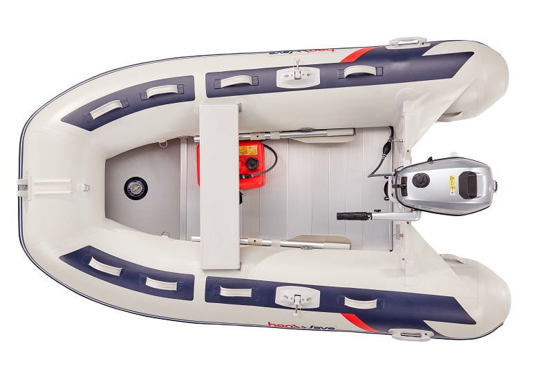 For sea enthusiasts that take fun seriously! Honda’s aluminium-deck inflatables are the ideal watercraft for just about any nautical activity and any sea condition. Rugged and ready to go, their extra-large buoyancy tubes guarantee smooth cruising every time. The floor slats are number coded for hassle-free assembly, and the smaller models can be stored in a single bag. So you can take them anywhere!